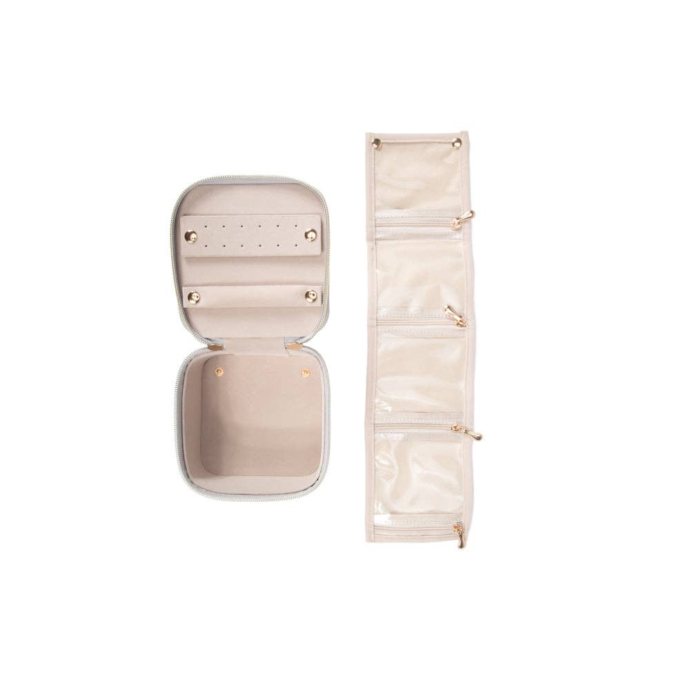 Introducing the Leah Travel Jewelry Case with Pouch – the perfect companion for any globetrotter looking to keep their jewelry safe and sound! This compact and chic velvet jewelry box features 6 pair earring plate for all your favorite pairings and a ring roll to keep them secure, plus a detachable fold-out 4 pocket zippered compartment with EVA window pouch – so practical! Not only is it stylish enough to sit pretty on your dresser or nightstand at home, but you can easily tuck it away for an overnight trip.