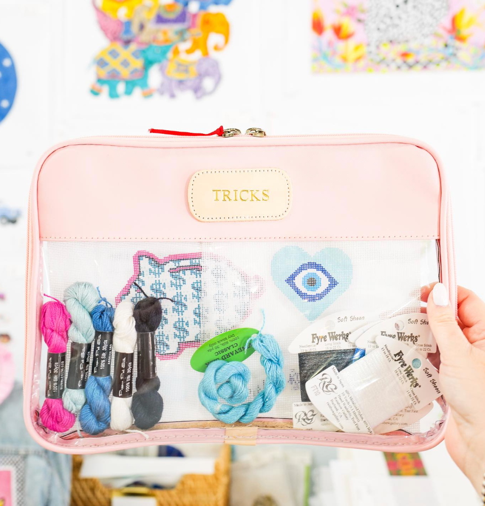 Our clear folio is perfect for keeping papers, needlepoint designs, mahjong cards, and so many other things!