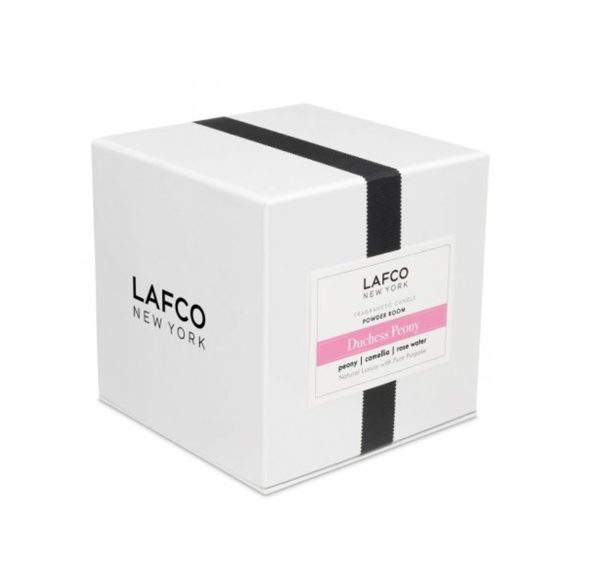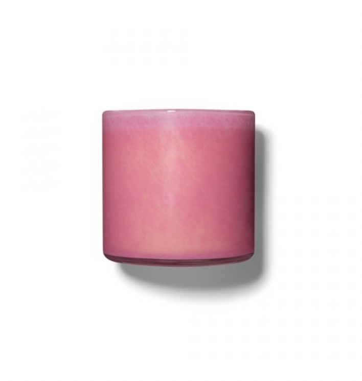 The hushed, elegant space feels like a sanctuary. A vase of delicate pink peonies and roses are surrounded by sparkling cassis berries. Soft camellia petals and powdery floral musk inspire a subtle finish.