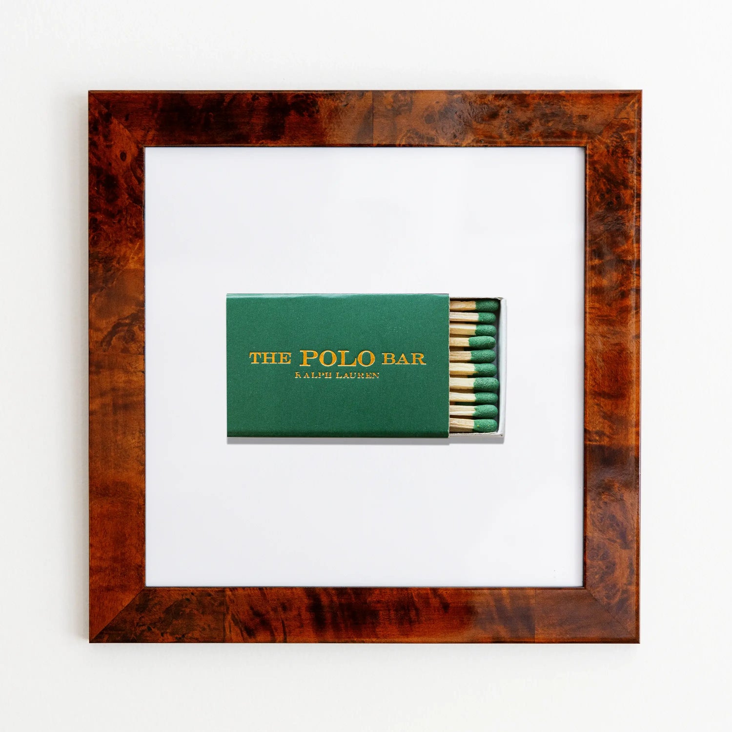 The Polo Bar framed print captures the essence of vintage matchbook art in a 12x12 inch print, framed in a minimalist 14x14 white flat profile. With a clear acrylic cover ensuring safe delivery, this print is the perfect gift for anyone looking to add a piece of history to their walls.