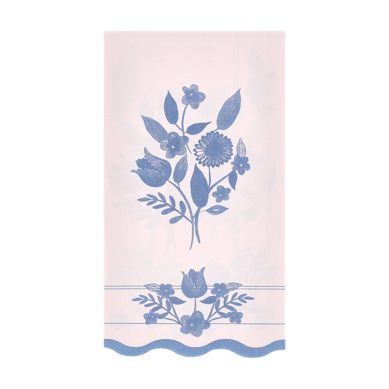 Add a sophisticated touch to your home with this set of pastel paper guest towels. Soft shades of pink, blue, green and yellow, provide a fresh backdrop for cobalt blue botanical illustrations inspired by vintage dinnerware. A wavy edge lends sculptural charm. Perfect for adding style to your guest bathroom, and equally elegant on the dinner table for spring soirées, bridal showers, chic picnics, baby showers or any grown-up gathering.
