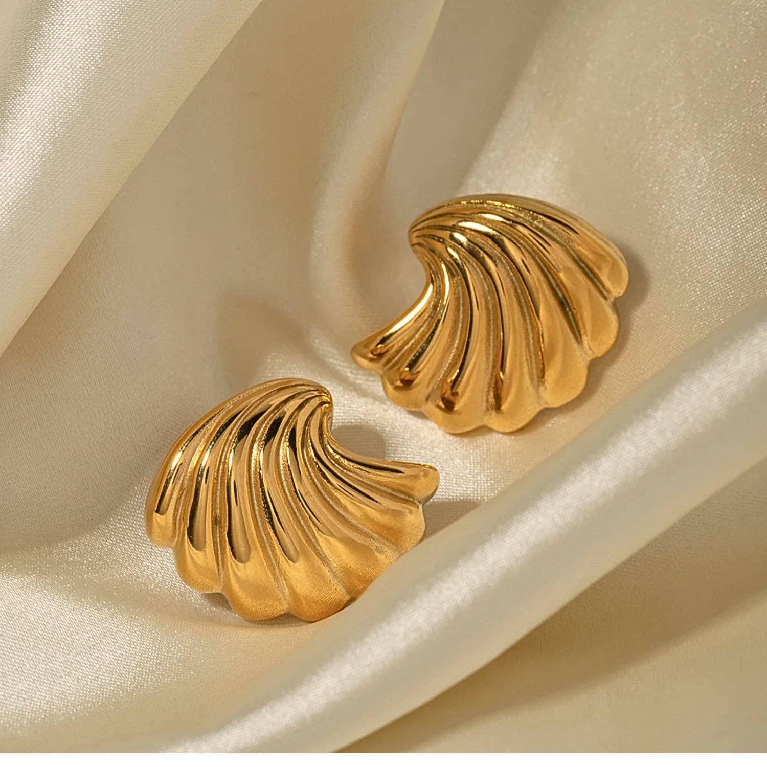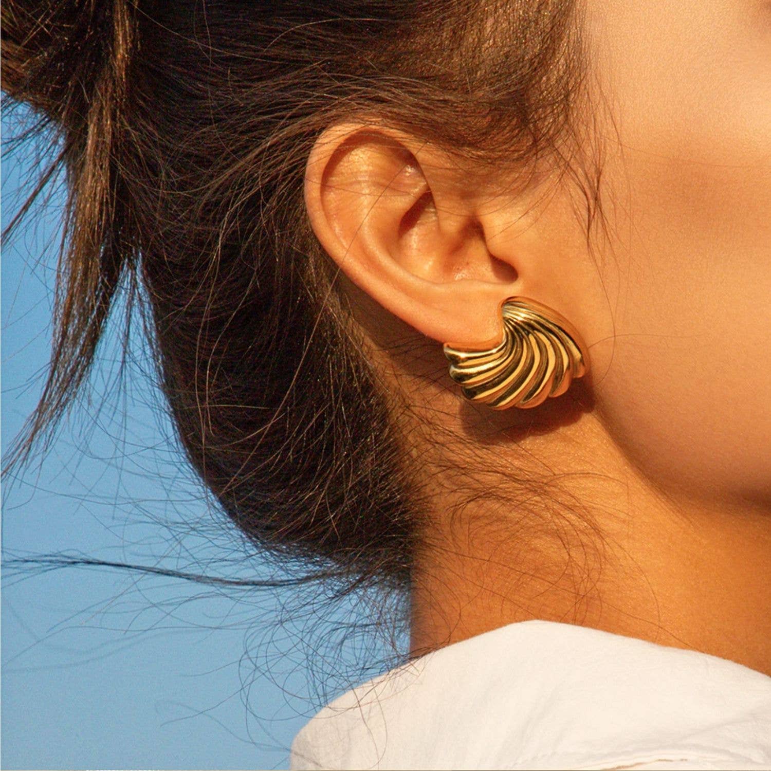 Add a touch of playful summer vibes to your outfit with our Curved Sea Shell Earrings. These gold waved earrings feature a unique shell shape, making them perfect for beach days or adding a coastal twist to your everyday look.
