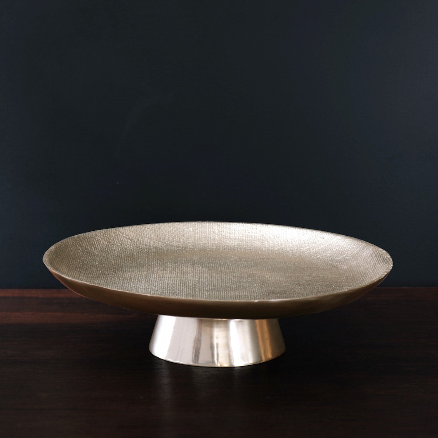 A step above! The fabulous SIERRA MODERN Pedestal Cake Plate (Gold) boasts a richly textured, fabric-inspired top surface with a generous serving area, contrasting with a smoothly polished tapered base. Designed to hold a cake, but also perfect for serving a variety of foods in high style. The elevated gold-tone piece adds a modern new dimension to Beatriz Ball’s award-winning designs. Mix and match SIERRA MODERN shapes, textures and finishes for an inspired and inspiring tablescape! Dishwasher safe, pieces will not chip, peel or stain. Beatriz Ball’s intensely handmade products use eco-friendly and sustainable materials and are crafted by artisans who trace a heritage of metalworking for generations. Made of a top quality, FDA safe, easy-care aluminum alloy.