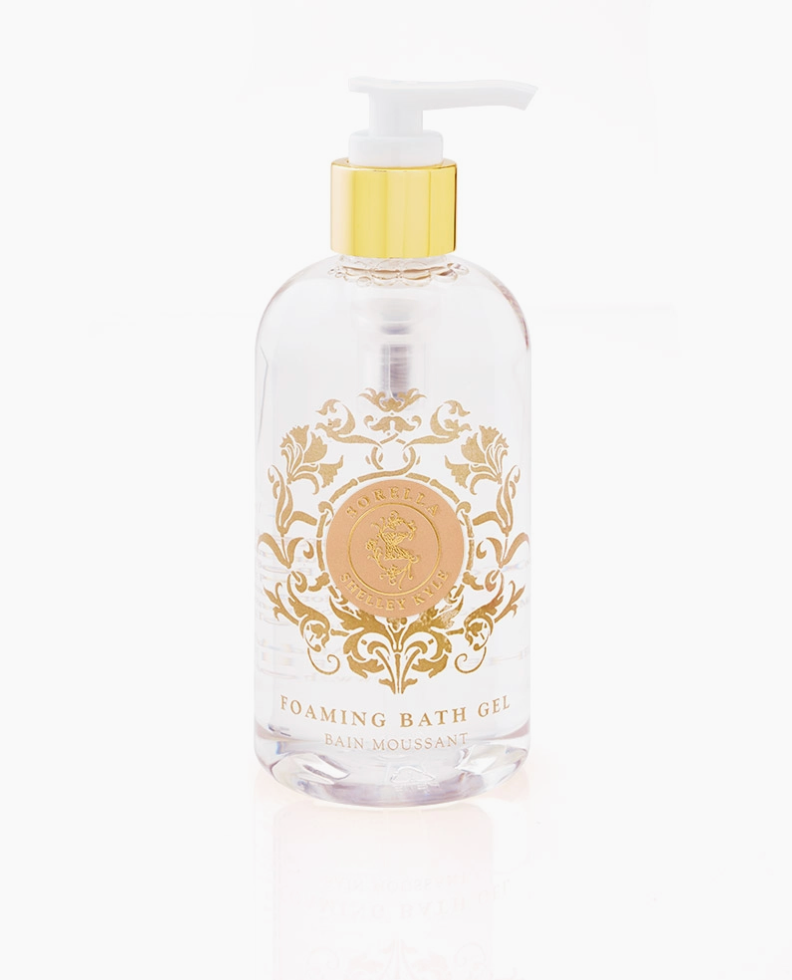 Shelley Kyle Sorella Foaming Bath Gel. Delightful. Carefree. Feminine. These words describe our Sorella Foaming Bath Gel. Our paraben-free formula leaves you feeling clean and moisturized, while lending a beautiful floral aroma that keeps your skin smelling wonderful all day long. Size: 250ml.