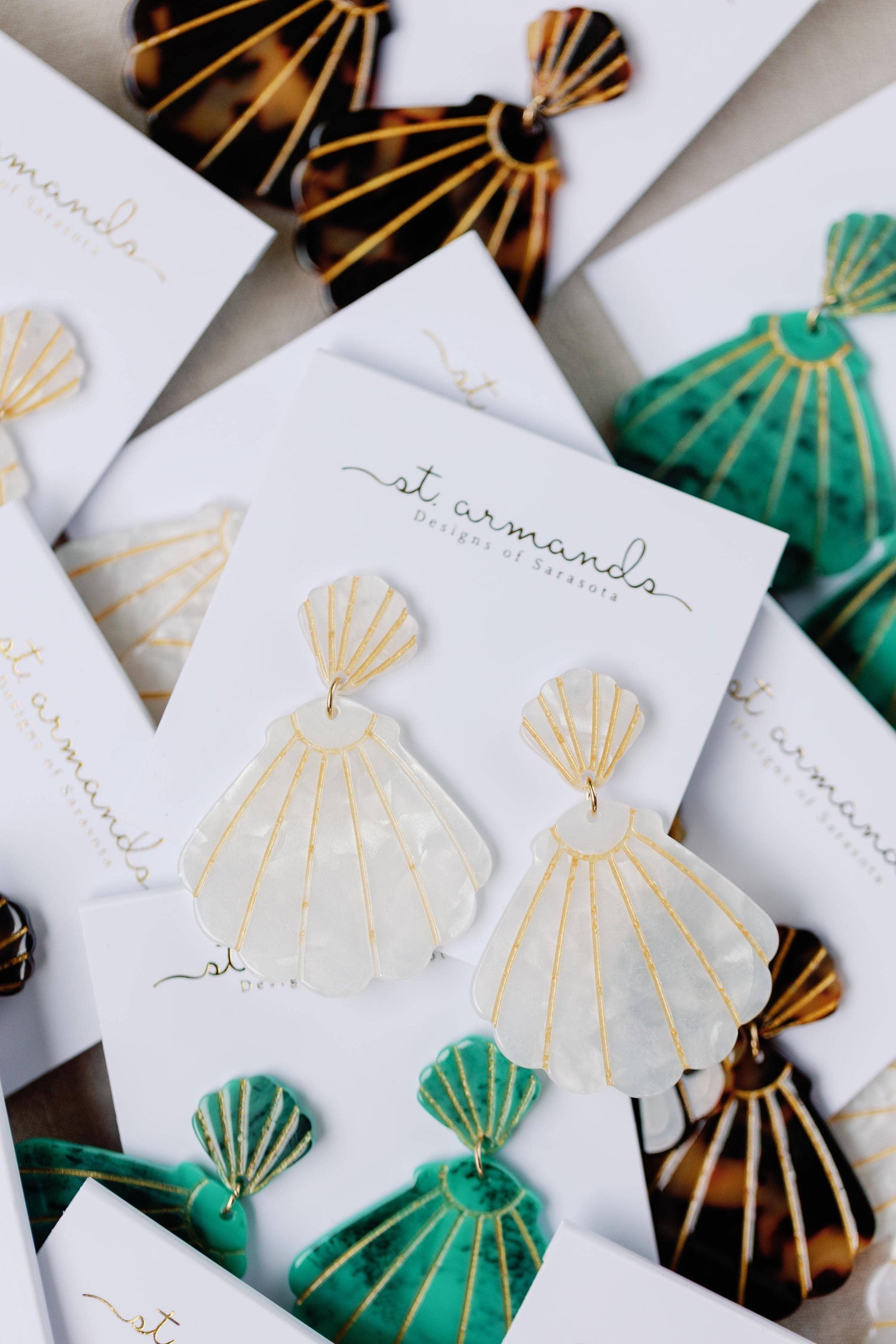 St Armands Designs of Sarasota - White Tortoise Statement Shell Earrings