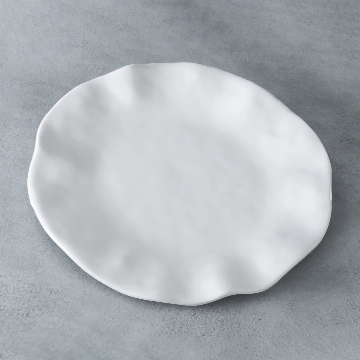 By popular demand! The VIDA Havana 11" Dinner Plate, an essential new item from Beatriz Ball's VIDA Collection of luxury melamine, is a much requested extension of our popular Havana Collection. With a perfectly irregular shape and a brilliant white surface, the round salad plate may be paired with other VIDA Havana dining pieces--a 9" salad plate --for a coordinated serving set. Sold individually. A table setting with a carefree Beatriz Ball twist! It looks great when sharing a table with SOHO Collection items from our signature metal line. The versatile plate has the luster, heft and look of a ceramic piece.Made of luxury melamine for everyday enjoyment, this piece is ideally suited for indoor and outdoor entertainment.Dishwasher safe (top rack), heavy-weight, break resistant and durable, food safe, BPA and PABA free.